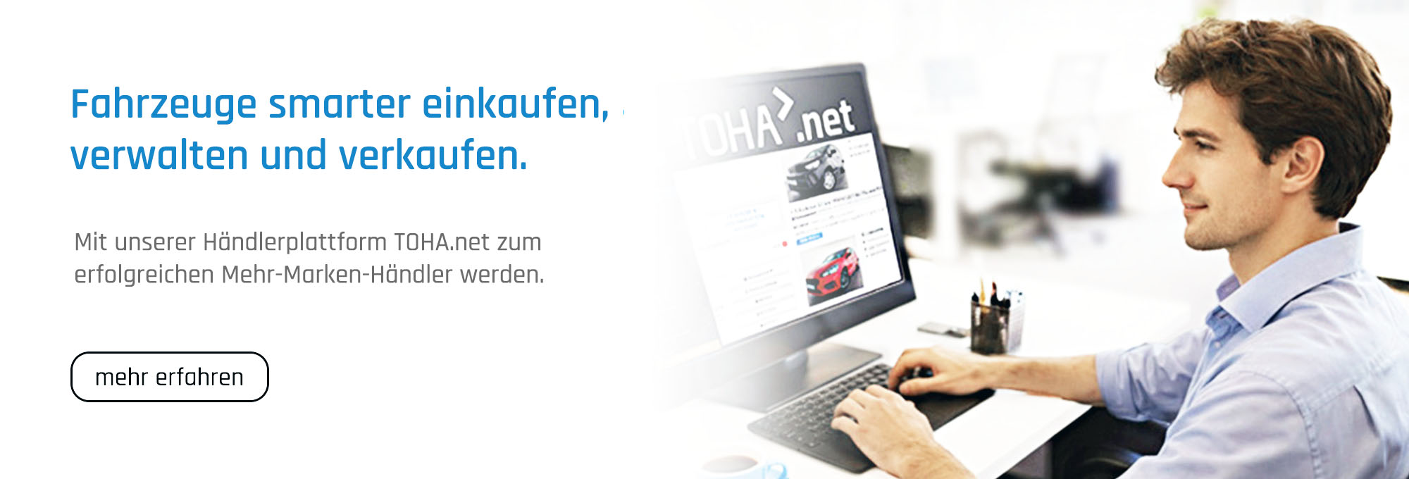 TOHA beliefert gewerbliche Wiederverkäufer zügig und zuverlässig mit attraktiven EU-Fahrzeugen zu besonders günstigen Konditionen. Und das mit nahezu allen Marken von Audi und BMW bis hinzu VW und Volvo. Ob Sie nun Fahrzeuge maßgeschneidert für Ihre Kunden bestellen oder kurzfristig, mit aktuell gefragten Ausstattungen, preisgünstig und schnell geliefert haben möchten: TOHA ist der kompetente Partner, für alle, die mit Autos handeln!